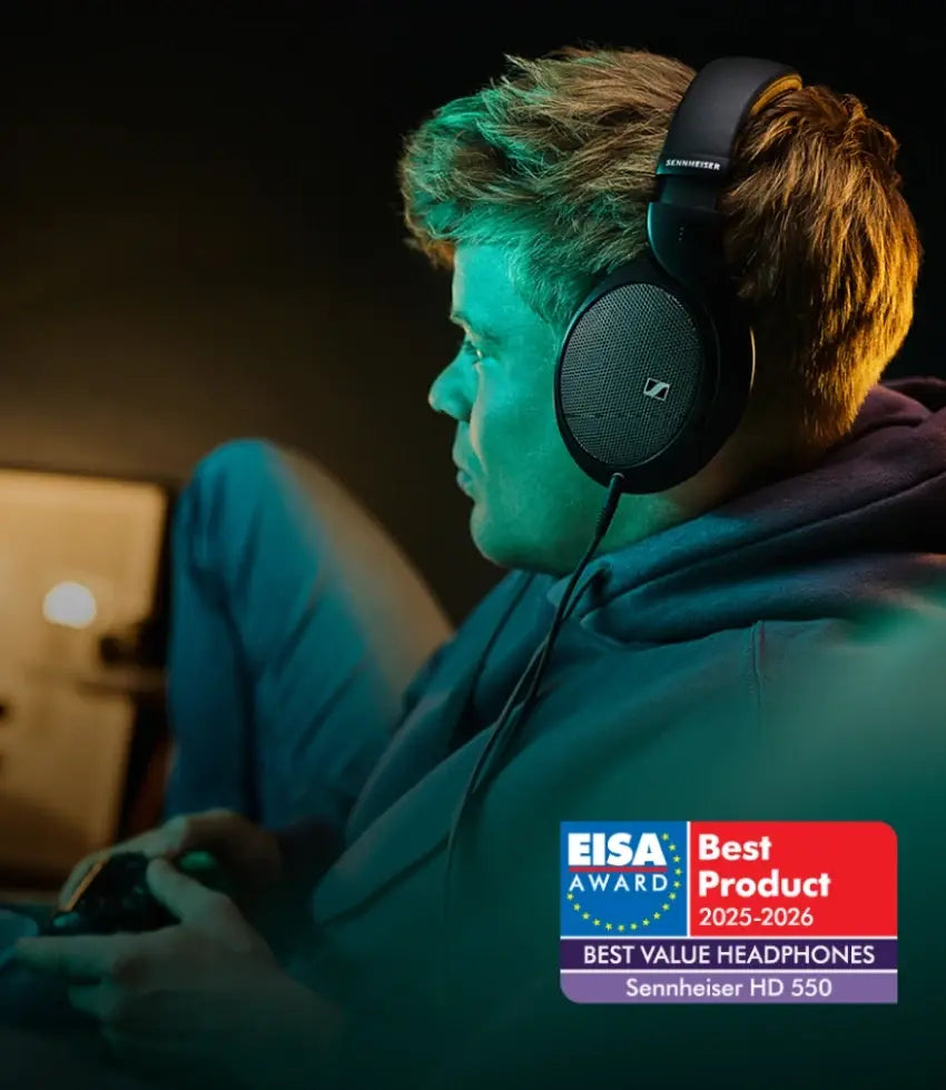 Your open-back allrounder for gaming and music. The HD 550 is crafted for gamers who crave extended bass and treble response with effortless precision. Experience deep, weighty lows combined with natural, airy highs, all while enjoying an ultra-light build of only 237 g for fatigue-free sessions. With its open-back design, expansive soundstage and detailed imaging, every subtle enemy footstep or ambient world detail is delivered exactly as intended. The HD 550 is tuned to deliver impactful, rich audio without sacrificing clarity – perfect for gamers ready to elevate their setup.